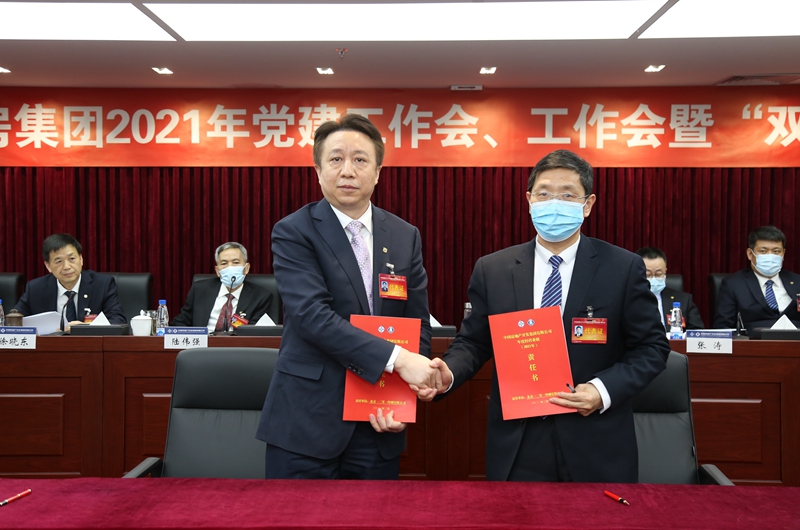 會議期間,公司與各二級企業、各項目公司代表簽訂了2021年度黨建目標任務責任書、職業健康安全環保責任書、經營業績(目標)責任書。